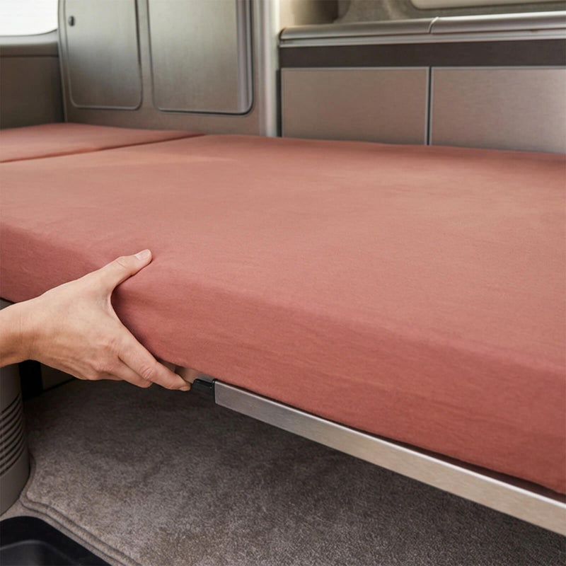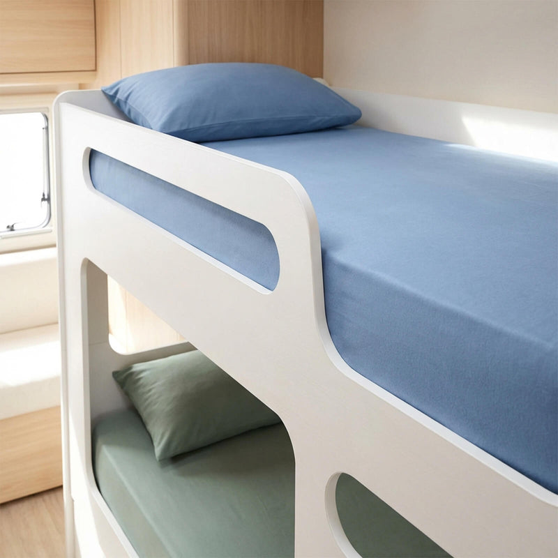 Odd shapes, rounded corners, narrow widths, bunk beds. Most sheets aren't made for caravan mattresses. Jersey sheets adapt to your bed — not the other way around.